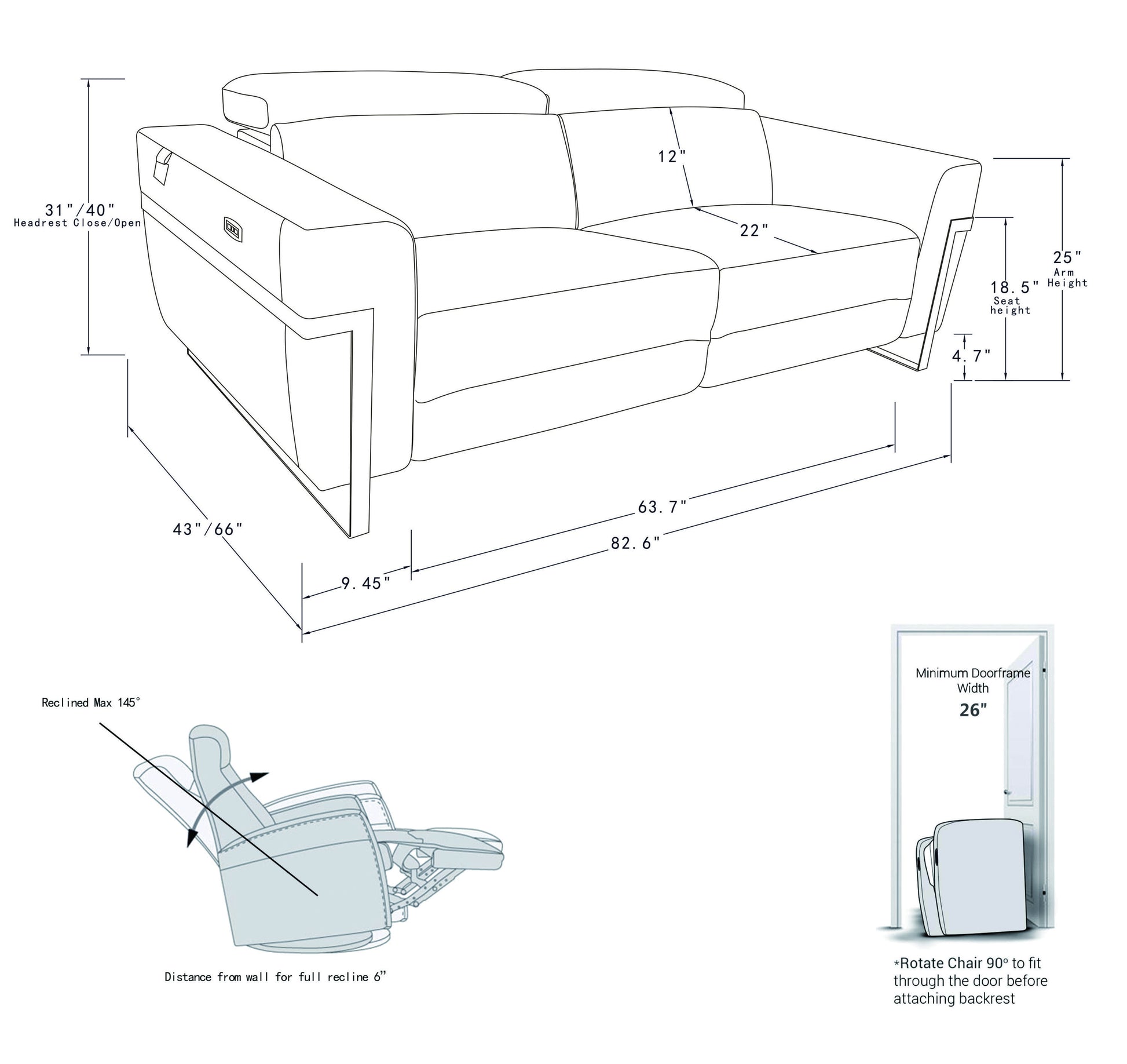 Experience the pinnacle of sophistication with our Global United Top Grain Italian Leather Sofa with Power Recliner in luxurious DARK GREY.