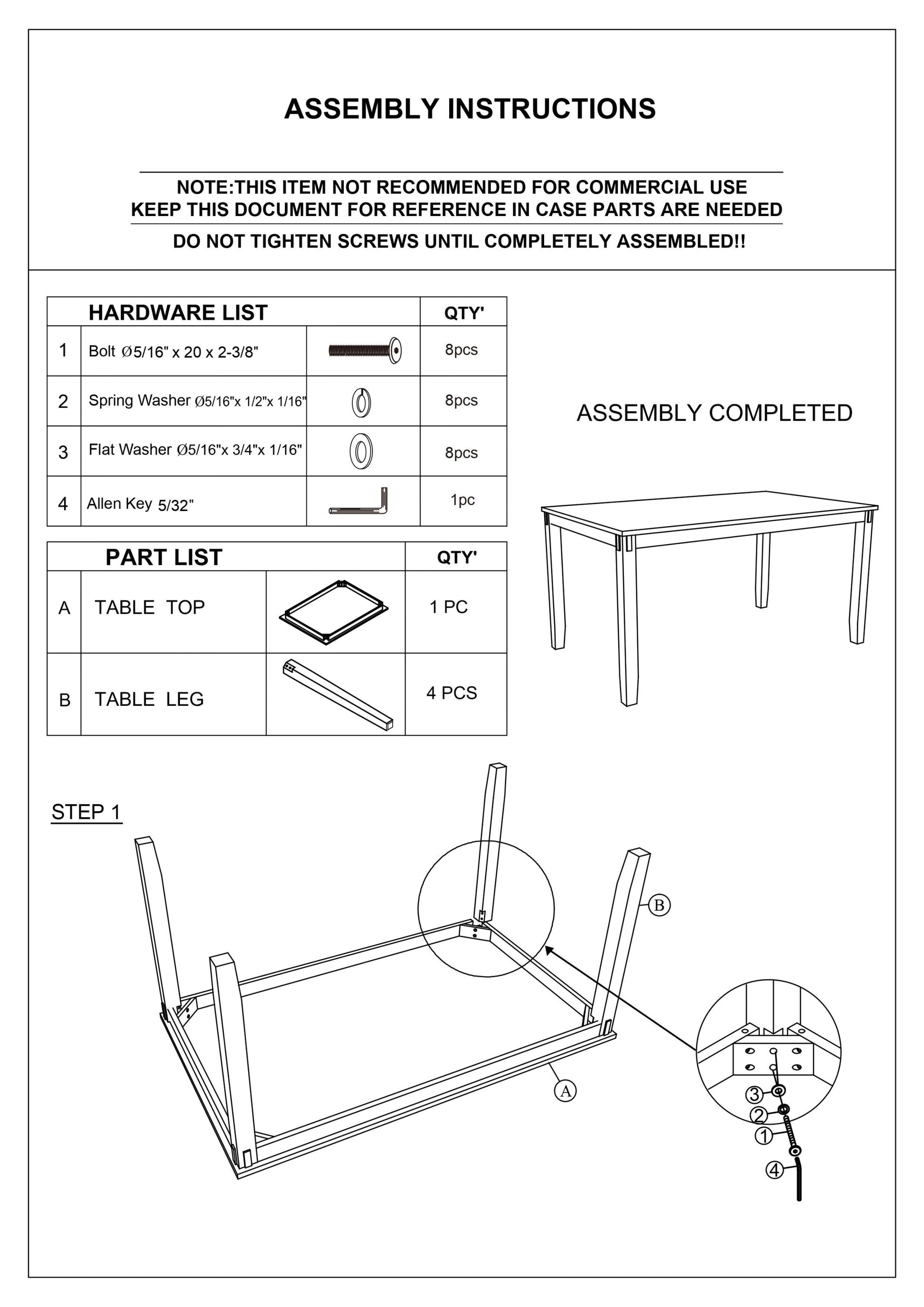 • Effortless assembly dining set