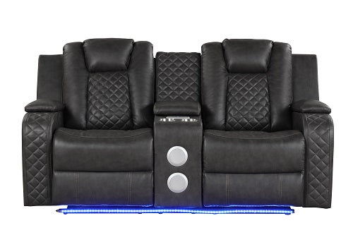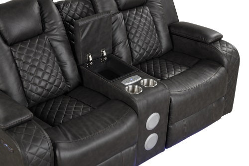Benz LED & Power Recliner 2 PC Made With Faux Leather in Black