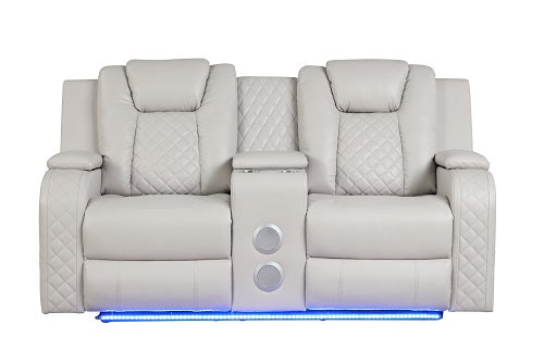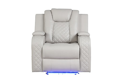Benz LED & Power Recliner 3 PC Made With Faux Leather in Ice