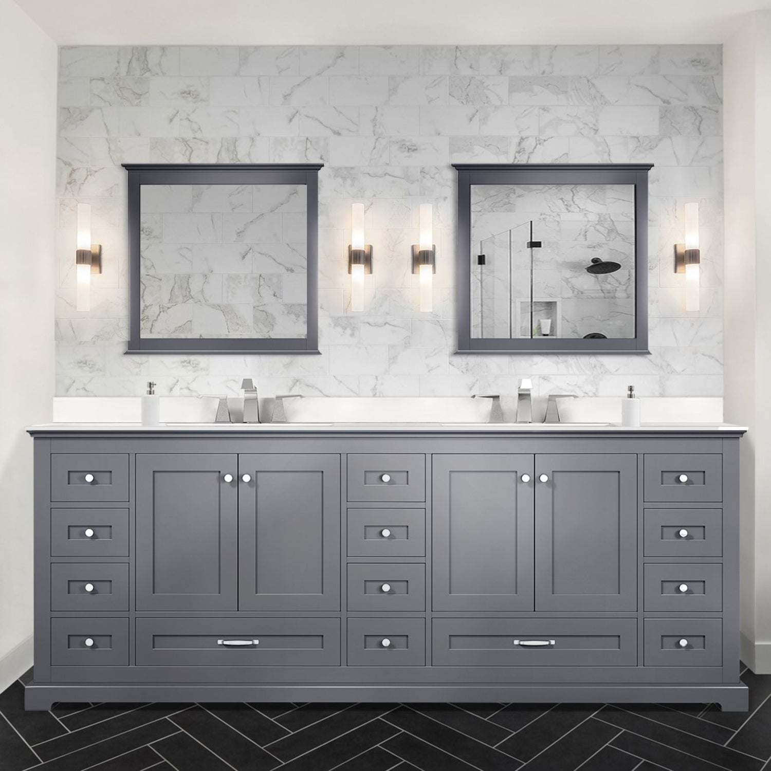 Dark Grey Double Bath Vanity 84 in. W x 22 in. D, White Quartz Top, and Faucet Set